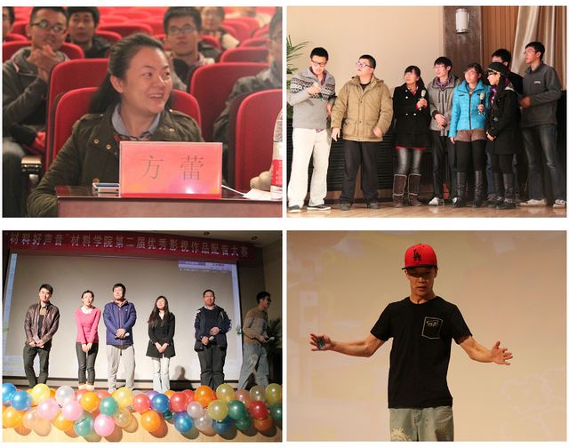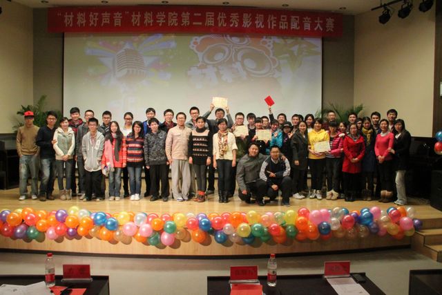 由材料學(xué)院本科生和研究生組成的十支隊伍參加了此次比賽。比賽按照參賽作品反映的年代分為“憶往昔”、“崢嶸歲月”、“還看今朝”三個板塊。比賽在一段輕松的音樂中拉開序幕,各參賽隊的親友團(tuán)喊出響亮的口號,觀眾們熱情高漲,現(xiàn)場氣氛十分活躍。比賽過程中,參賽者盡情展示了豐富的情感與獨特的聲音魅力,重新演繹了多部優(yōu)秀影視劇作品。《功夫》中幽默搞笑的臺詞和語調(diào)引發(fā)陣陣歡樂,帶大家重溫喜劇經(jīng)典;《康熙大帝》中康熙十幾分鐘的整段臺詞讓人欽佩的同時也引發(fā)大家以史為鑒,對現(xiàn)實社會審視和反思;《地下交通站》中詼諧搞怪的配音加上恰到好處的表情神態(tài),把鬼子的丑惡嘴臉表現(xiàn)得淋漓盡致;《亮劍》以真情感人,配音細(xì)節(jié)處理惟妙惟肖,堪稱原音重現(xiàn);經(jīng)典電影《地道戰(zhàn)》帶我們回顧了那段艱巨歲月下人民群眾的智慧和革命精神,大家紛紛感慨人民戰(zhàn)爭的無窮威力;《恰同學(xué)少年》截取了一代偉人毛澤東在風(fēng)華正茂的學(xué)生時期,主動請命帶領(lǐng)同學(xué)們斗爭的片段,深深吸引了觀眾;《海綿寶寶》的配音同學(xué)們童心未泯,夸張的配音和默契的配合贏得了陣陣掌聲;《北京愛情故事》呼吁同學(xué)們熱愛生活、熱愛生命,得到觀眾的一致認(rèn)可;《新占座時代》以校園永恒的話題“占座”為主線,將多部影視劇串燒組合,觀眾們深有體會,產(chǎn)生共鳴;《大學(xué)二三事》巧妙的將多部電影剪輯重新組合,從學(xué)生的視角,把 “假期”、“上課”、“愛情”等以全新地形式展現(xiàn)出來,把現(xiàn)場氣氛推向了高潮。比賽間隙,院研究生會學(xué)術(shù)部部長曾俊璽的一段熱舞《新白娘子傳奇》吸引了眾多觀眾的眼球,獲得了全場熱烈的掌聲。臺上的同學(xué)展現(xiàn)著自己的風(fēng)采,臺下的同學(xué)感受著他們所帶來的歡樂及感動。觀眾們時而歡笑,時而感動,完全沉浸于參賽者所展現(xiàn)的故事情節(jié)之中。