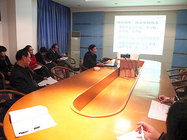 萬小利重點(diǎn)就黨的十八大通過的胡錦濤同志代表中共第十七屆中央委員會(huì)所作的報(bào)告向與會(huì)人員作了傳達(dá)和解讀,并對(duì)全校深入學(xué)習(xí)貫徹黨的十八大精神進(jìn)行部署。