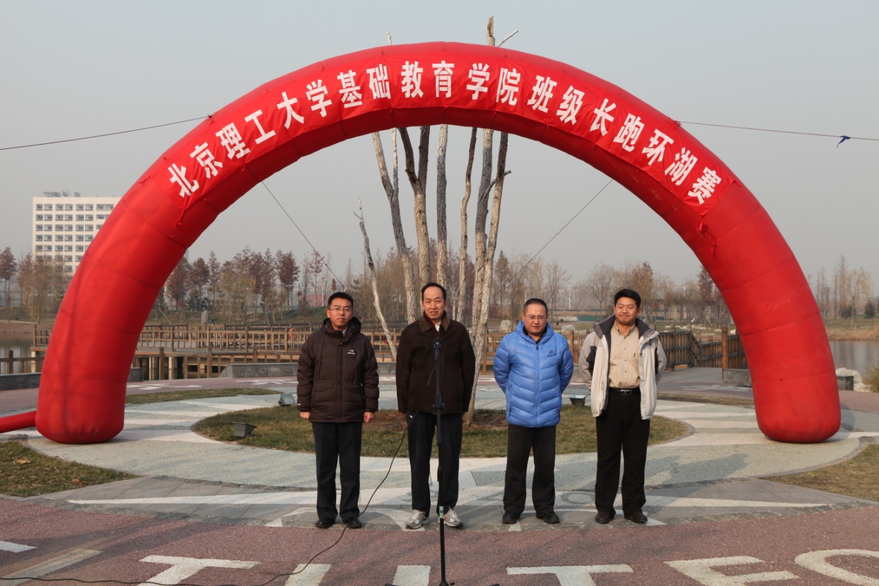 2012年11月27日下午2點,基礎教育學院第四屆班級長跑環(huán)湖賽在良鄉(xiāng)校區(qū)北湖成功開幕。基礎教育學院常務副院長張青山,副書記、副院長叢磊,辦公室主任楊艷波及全體學生工作干部與參與當天比賽的二百余名學生一同參加了開幕式,儀式由2012級光電專業(yè)輔導員付丹丹主持。