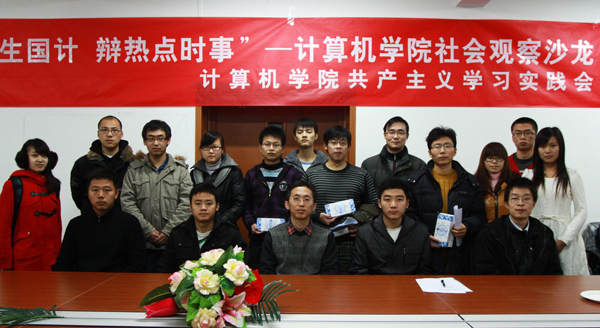 作為主題教育系列活動(dòng)的一部分,2012年12月15日上午,由計(jì)算機(jī)學(xué)院分團(tuán)委主辦、學(xué)院共產(chǎn)主義學(xué)習(xí)實(shí)踐會(huì)承辦的社會(huì)觀察沙龍活動(dòng)在計(jì)算中心110會(huì)議室順利舉行。校共產(chǎn)主義學(xué)習(xí)實(shí)踐總會(huì)會(huì)長(zhǎng)周柱均、總會(huì)駐中關(guān)村校區(qū)實(shí)踐部副部長(zhǎng)張旸出席此次活動(dòng),參加活動(dòng)的學(xué)院領(lǐng)導(dǎo)有學(xué)院黨委書記郭彥懿、分團(tuán)委書記孫程、分團(tuán)委副書記劉賀等。學(xué)院團(tuán)學(xué)骨干和各黨支部代表出席活動(dòng),活動(dòng)由學(xué)院共產(chǎn)主義學(xué)習(xí)實(shí)踐會(huì)會(huì)長(zhǎng)王亞珅主持。