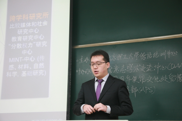 為了促進(jìn)我校對(duì)德交流,讓學(xué)生了解德國(guó)高校的概況和運(yùn)行機(jī)制,了解留學(xué)德國(guó)審核程序以及語(yǔ)言學(xué)習(xí)和測(cè)試方面的信息,2012年12月23日上午十點(diǎn),我校德語(yǔ)培訓(xùn)中心在中關(guān)村校區(qū)舉辦了“北京理工大學(xué)留學(xué)德國(guó)咨詢會(huì)”。德意志學(xué)術(shù)交流中心(DAAD)、留德人員審核部駐京辦事處(APS)、北京理工大學(xué)德語(yǔ)培訓(xùn)中心、德國(guó)卡爾斯魯厄工業(yè)大學(xué)以及錫根大學(xué)的相關(guān)項(xiàng)目負(fù)責(zé)人蒞臨現(xiàn)場(chǎng),為同學(xué)們作相關(guān)主題報(bào)告并現(xiàn)場(chǎng)回答問題。