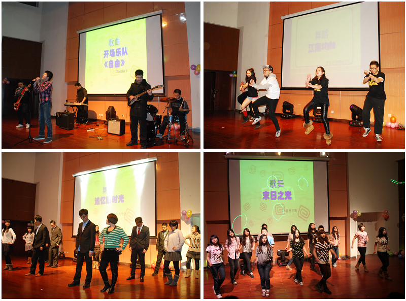 晚會(huì)開(kāi)始,學(xué)院黨委書(shū)記張紅峻向全院師生致新年賀詞。激情飛揚(yáng)的樂(lè)隊(duì)表演為晚會(huì)拉開(kāi)序幕。隨后,多才多藝的人文學(xué)院同學(xué)們上演了異彩紛呈的節(jié)目,爵士舞《party girl》充滿青春活力;12級(jí)社工班的小品《唇槍舌戰(zhàn)》讓大家忍俊不禁,吉他伴唱《Umbrella》為晚會(huì)帶來(lái)了清新的氣息,11級(jí)社工班的群舞《懷念舊時(shí)光》搞笑中夾雜著舊時(shí)光的甜美回憶,09級(jí)同學(xué)表演了街舞《江南style》。