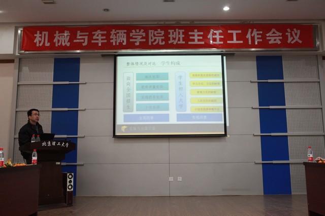 學(xué)院院長項(xiàng)昌樂教授對班主任工作提出了四方面希望:一是希望班主任要不斷提高對工作的認(rèn)識,滿懷責(zé)任心、熱心和信心來開展工作,堅(jiān)持自身作風(fēng)建設(shè),堅(jiān)持對學(xué)生的正面引導(dǎo);二是希望廣大班主任要對人才培養(yǎng)的層次性有清晰把握,首先完成做人的培養(yǎng),其次完成基礎(chǔ)和專業(yè)知識的傳授,最后完成不同方面、領(lǐng)域的學(xué)生創(chuàng)新能力和綜合素質(zhì)的提高;三是希望廣大班主任針對班級工作和學(xué)生個(gè)體成長提前做好謀劃,在不同時(shí)期通過德育答辯相關(guān)活動(dòng)、班級集體活動(dòng)、參加學(xué)院不同的個(gè)性化人才培養(yǎng)模塊等方式對不同學(xué)生進(jìn)行分類管理,爭取做到在特定的時(shí)間針對不同的學(xué)生開展特定的指導(dǎo),及時(shí)解決各個(gè)階段性問題;四是希望班主任重視做好班級學(xué)生干部隊(duì)伍建設(shè)工作,弘揚(yáng)正氣,對優(yōu)秀的學(xué)生干部進(jìn)行有針對性的歷練,管好、建好學(xué)生骨干隊(duì)伍。