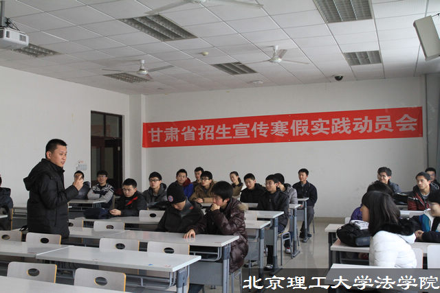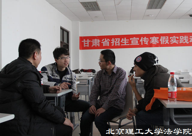 2012年的冬天,北京理工大學(xué)各學(xué)院都在積極為寒假招生宣傳工作進(jìn)行著緊鑼密鼓的籌備,負(fù)責(zé)甘肅招生宣傳工作的法學(xué)院為提高北京理工大學(xué)在甘肅省的綜合影響力,吸引更多優(yōu)秀的甘肅籍考生積極報(bào)考,專門組織2011級(jí)和2012級(jí)的甘肅籍學(xué)生參與到招生宣傳社會(huì)實(shí)踐活動(dòng)中來(lái)。