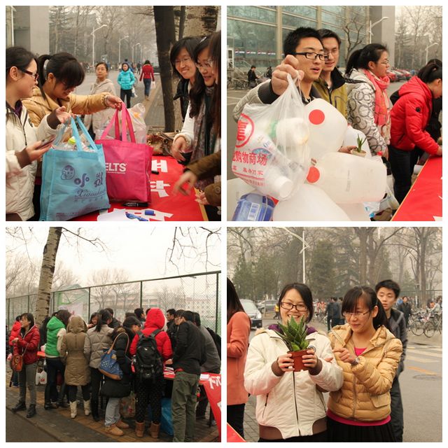 盡管天空下著小雨,依然沒有澆滅師生參與的熱情。大家自覺地排起了長隊(duì),前來登記換盆栽的同學(xué)絡(luò)繹不絕。蘆薈、仙人球、彩色仙人掌、觀音蓮、開花竹等多個品種的近百盆綠植在不到一個小時的時間里就被熱情洋溢的師生們?nèi)繐Q完。本次活動共回收廢舊塑料瓶、易拉罐3000余個。