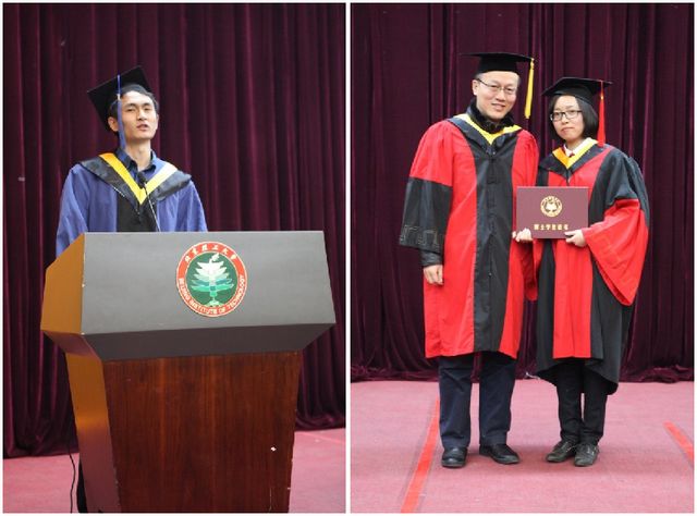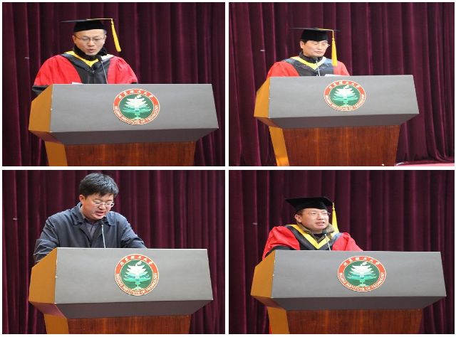 隨后,優(yōu)秀畢業(yè)生代表肖洪源上臺發(fā)言,他動情地回顧了兩年多研究生求學(xué)生涯中難忘的點點滴滴,表達了畢業(yè)生對母校的深深眷戀。在言語中感謝老師多年的培育之恩,感謝家人朋友的一路支持,并號召同學(xué)們不忘感恩和回饋,努力承擔責任,造福社會。