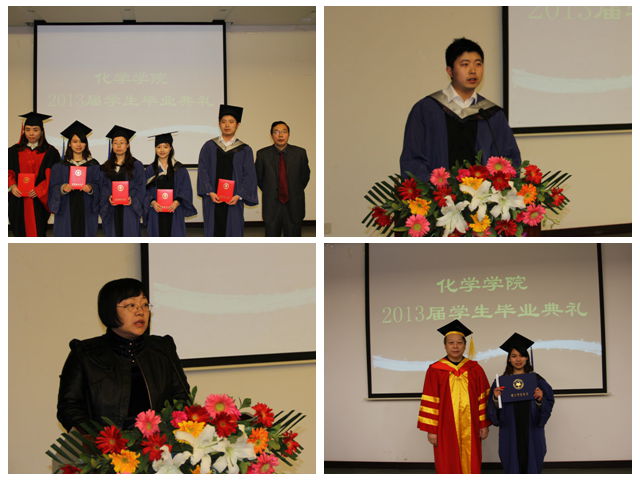 3月26日,化學(xué)學(xué)院2013屆春季研究生畢業(yè)典禮暨學(xué)位授予儀式在研究生樓102報告廳隆重舉行,學(xué)院全體在校院領(lǐng)導(dǎo)、部分教師、部分學(xué)生家屬和全體畢業(yè)生出席典禮。