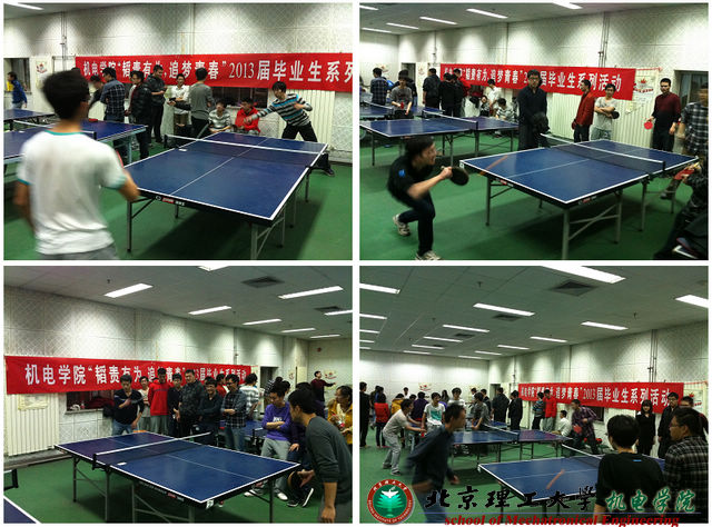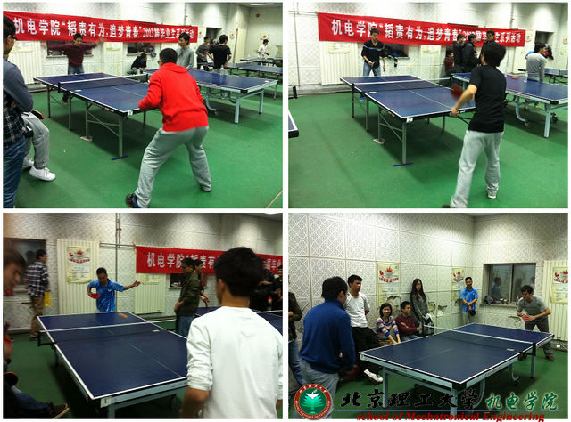 三月草長,春意漸濃。機電學(xué)院2009級本科畢業(yè)生用他們的激情為我們演繹了一場精彩的乒乓球賽。3月30日、31日在體育館地下乒乓球場,機電學(xué)院舉辦了畢業(yè)生乒乓球比賽。經(jīng)過激烈的淘汰廝殺,最終09級彈藥班以較大優(yōu)勢摘得桂冠,本碩博、機電二、機電一分別列獲二三四名。輔導(dǎo)員王鵬翔老師也在比賽現(xiàn)場為各班級加油助威,畢業(yè)生各班級均派出了運動員和拉拉隊參與了本次比賽。