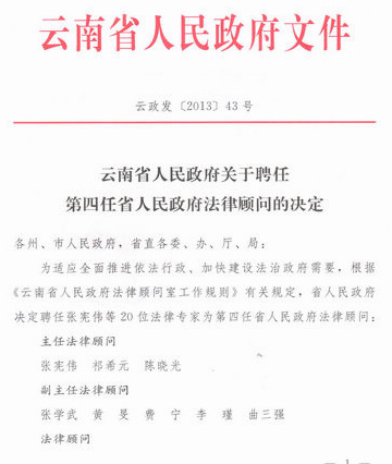 近期,云南省人民政府公布了新一批法律顧問名單,北京理工大學(xué)法學(xué)院院長曲三強教授再次受聘,這是曲三強連續(xù)四屆擔(dān)任該省的法律顧問。新聘任的法律顧問還有胡建淼(原浙江大學(xué)副校長)、卓澤淵(原西南政法大學(xué)副校長)和馬懷德(中國政法大學(xué)副校長)等著名法學(xué)家。