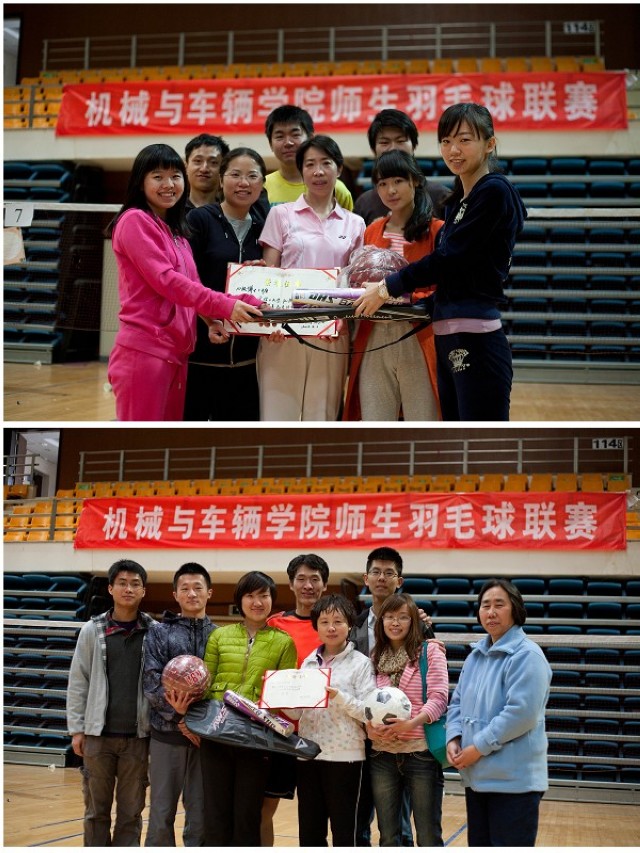2013年4月3日,機械與車輛學院師生羽毛球賽決賽在體育館激烈開戰(zhàn),爭奪冠亞季軍的兩場精彩比賽也為從3月份開始、為期三周的學院師生羽毛球賽劃上了圓滿句號。北京的春天乍暖還寒,此次羽毛球賽旨在讓全院師生在這個季節(jié)踏上運動場,全民健身,切磋球技,增進交流。