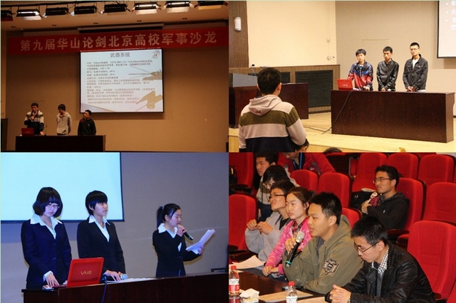 2013年4月中旬,第九屆北京高校軍事沙龍復(fù)賽在北京理工大學(xué)七號(hào)樓報(bào)告廳順利舉行。來(lái)自中國(guó)政法大學(xué)、中華女子學(xué)院、中國(guó)勞動(dòng)關(guān)系學(xué)院、中國(guó)人民大學(xué)、北京航空航天大學(xué)、北京科技大學(xué)、國(guó)際關(guān)系學(xué)院、中國(guó)青年政治學(xué)院、華北電力大學(xué)和北京理工大學(xué)等10所高校的代表隊(duì),分成兩場(chǎng)進(jìn)行了激烈的角逐。