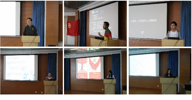 隨后張浩同學(xué)簡要介紹了志愿服務(wù)的精神內(nèi)涵——自身價值的實現(xiàn);之后,他介紹了班級的志愿傳統(tǒng):2012年5月,支部同學(xué)參與北京房山國際長走大會志愿者活動;2013年1月,全體團(tuán)員參加“溫暖衣冬”志愿服務(wù)活動;2013年3月17日,支部同學(xué)集體參觀了《永遠(yuǎn)的雷鋒》大型主題展覽,并在參觀后開展了為期兩周的學(xué)雷鋒志愿活動,取得了很好的效果。在課余時間,大家積極參與志愿服務(wù)活動,有的同學(xué)在圖書館整理圖書,有的同學(xué)在下雪后及時清掃積雪;2012年暑假,趙曄同學(xué)參加北京大學(xué)生治理沙塵源志愿活動。徐榕同學(xué)講述了自己的志愿者故事,她加入了家鄉(xiāng)什邡市大學(xué)生志愿者協(xié)會,每年寒暑假在當(dāng)?shù)亻_展志愿者活動。