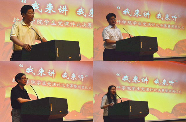 軟件學(xué)院黨委為加強學(xué)生黨支部建設(shè),增強學(xué)生黨員、入黨積極分子和青年團員的理論學(xué)習(xí)實效,創(chuàng)新黨課培訓(xùn)形式,提高黨員骨干與入黨積極分子培養(yǎng)質(zhì)量,開展了“我來講,我來聽”學(xué)生黨課評比大賽。將“我來講,我來聽”學(xué)生黨課評比大賽打造為全院青年學(xué)生思想學(xué)習(xí)的紅色陣地,充分發(fā)揮黨支部的戰(zhàn)斗堡壘作用和黨員骨干的先鋒模范作用,推動學(xué)生黨課、入黨積極分子培養(yǎng)的改革,加強青年學(xué)生黨性教育。第二屆“我來講,我來聽”學(xué)生黨課評比大賽在第一屆學(xué)生黨課評比大賽成功舉辦的基礎(chǔ)上進(jìn)行了創(chuàng)新和發(fā)展,各學(xué)生黨支部成立“學(xué)生黨課講師團”,積極吸納入黨積極分子以主人翁的身份參與到黨課當(dāng)中來,各年級學(xué)生分別結(jié)合當(dāng)前的熱點理論問題,圍繞“中國夢”以及十八大報告提出的“三觀”、“三熱愛”、“三個自信”等主題進(jìn)行黨課演講。經(jīng)過初賽和復(fù)賽的層層選拔,最終有四個黨支部的代表隊入圍今天的決賽。