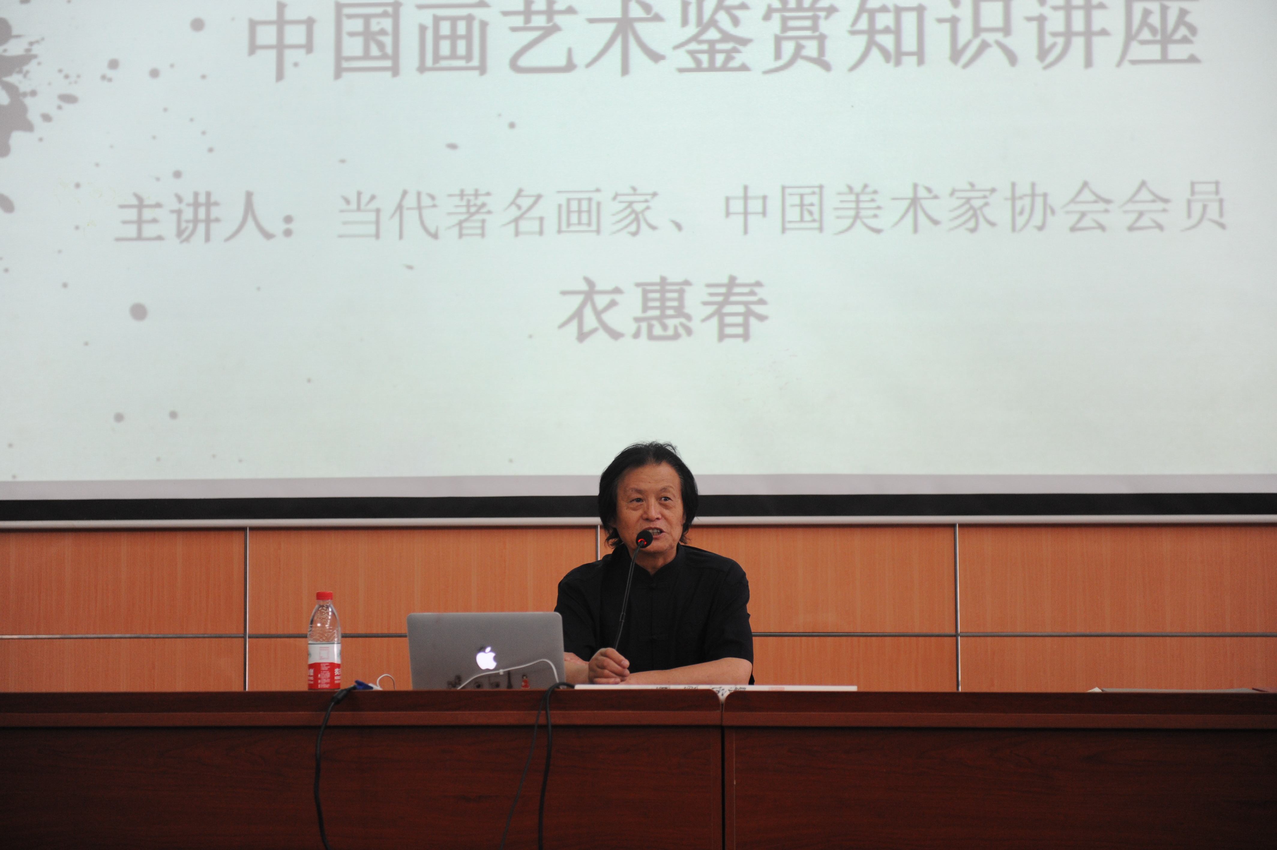 2013年5月14日下午,當(dāng)代著名畫家、中國(guó)徐悲鴻畫院藝術(shù)委員會(huì)副主任衣惠春先生應(yīng)北理工人文與社會(huì)科學(xué)學(xué)院邀請(qǐng),在良鄉(xiāng)校區(qū)綜合教學(xué)樓報(bào)告廳為師生帶來《中國(guó)畫藝術(shù)鑒賞》書畫藝術(shù)講座。著名畫家衣陽女士,人文學(xué)院黨委書記張紅峻教授,黨委副書記、副院長(zhǎng)徐貴寶老師與良鄉(xiāng)校區(qū)兩百多名師生共同聆聽了此次講座。講座由人文學(xué)院團(tuán)委書記孫碩老師主持。