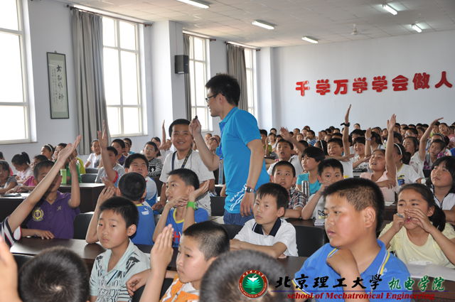 2013年5月24日下午,為貫徹落實北京理工大學高??破談?chuàng)作與傳播試點活動綱領(lǐng),機電學院科普宣講團徐喆、鄭婷婷、侯云娟、姚懷瑾和吳瓊等7名成員來到了河北省張家口市涿鹿縣,在涿鹿中學和涿州市實驗小學進行科普宣講。河北涿鹿縣教育局張錦琳和王曉慧股長接待了科普宣講團成員。