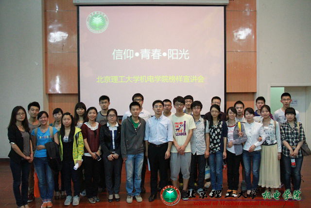 2013年5月28日,按照校團委“信仰•青春•陽光”主題教育活動的總體安排,結合機電學院“機電先鋒”榜樣評選活動,學院開展了“機電先鋒”榜樣宣講會。機電學院和基礎教育學院機械學部相關輔導員出席?;A教育學院機械學部2011和2012級300名學生參加。宣講會由機電學院團委書記章濤主持。