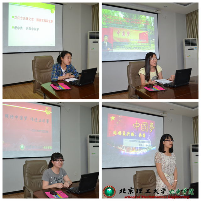 經(jīng)過前期的申報(bào)及篩選,共有本科生和研究生6個(gè)團(tuán)支部參加答辯。各團(tuán)支部就活動(dòng)開展的目的、意義,實(shí)施的具體情況和取得的效果等進(jìn)行了重點(diǎn)闡述。2010級探測制導(dǎo)與控制技術(shù)團(tuán)支部分享了“勿忘國恥 愛我中華”圓明園參觀主題團(tuán)日活動(dòng);12S2團(tuán)支部講述了支部全體同學(xué)在玉淵潭采訪群眾中國夢的經(jīng)過;2009級安全工程團(tuán)支部講述了支部全體同學(xué)和系主任、班主任共暢中國夢的活動(dòng);2009級探測制導(dǎo)與控制技術(shù)團(tuán)支部講述了在國家博物館開展“同鑄復(fù)興路 共圓中國夢”主題團(tuán)日活動(dòng)的情況;2010級安全工程本碩博團(tuán)支部和特種能源與煙火技術(shù)團(tuán)支部分別講述了團(tuán)員青年們利用知識競賽、朗誦等形式學(xué)習(xí)中國夢相關(guān)理論知識的情況。學(xué)院團(tuán)干部對各支部活動(dòng)開展情況進(jìn)行了點(diǎn)評。