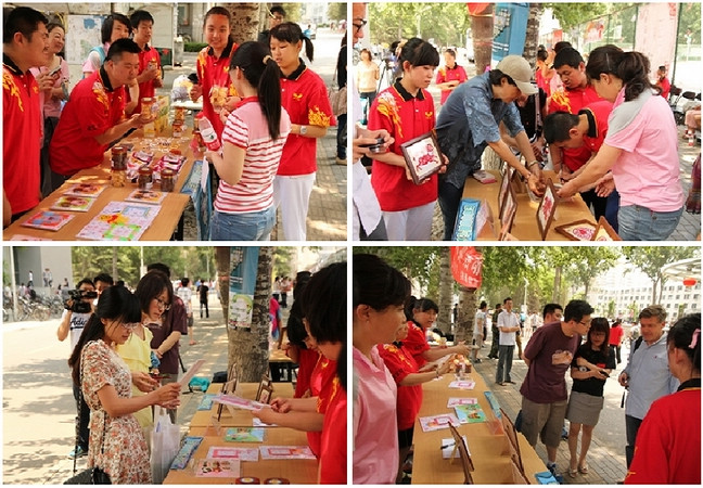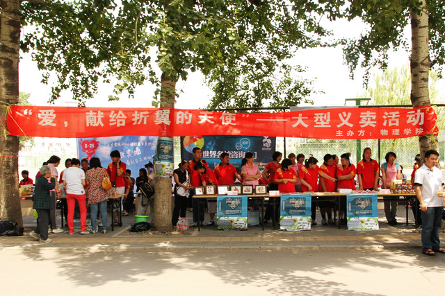 2013年5月24日,愛心傳遞系列活動(dòng)之——“智障學(xué)生手工藝品義賣”在我校順利舉行?;顒?dòng)當(dāng)天,來自培智學(xué)校的學(xué)生帶著自己親手制作的軟陶筆筒、花瓶、手機(jī)套、剪紙、曲奇餅干等作品,也帶著對大學(xué)的憧憬和夢想來到校園。菁菁校園也因?yàn)樗麄兊牡絹砀教砣宋年P(guān)懷和感恩之情,老師和同學(xué)挑選自己喜愛的作品,并和智障學(xué)生交流和溝通,給予他們鼓勵(lì)和溫暖。