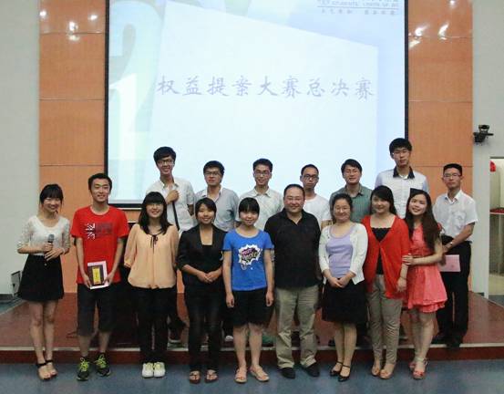 2013年5月31日晚7點(diǎn),由北京理工大學(xué)學(xué)生會(huì)權(quán)益中心主辦的首屆“權(quán)益提案大賽”決賽在良鄉(xiāng)校區(qū)綜合教學(xué)樓報(bào)告廳成功舉辦?;A(chǔ)教育學(xué)院黨委副書記、副院長叢磊,校團(tuán)委副書記、基礎(chǔ)教育學(xué)院團(tuán)委書記肖坤,校團(tuán)委副書記周明宇,黨委研究生工作部周瀟瀟,黨委學(xué)生工作部呂晶等出席了本次大賽并擔(dān)任評(píng)委。