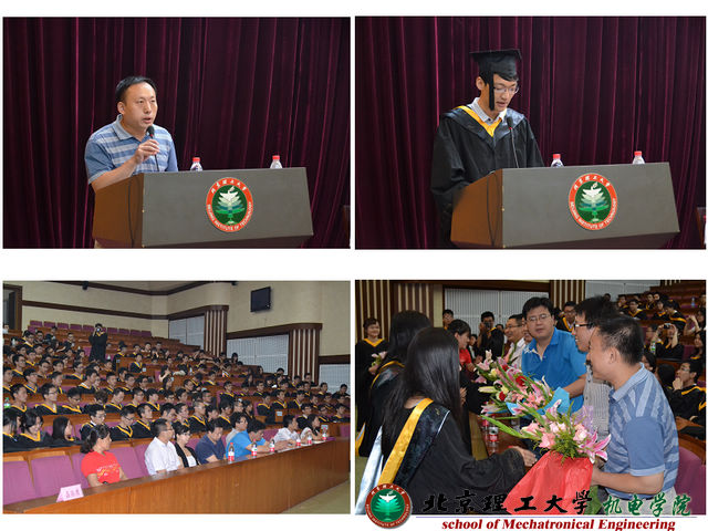 在全體師生奏唱國(guó)歌之后,首先由焦清介院長(zhǎng)向全體畢業(yè)生致辭。焦院長(zhǎng)首先表示了對(duì)全體機(jī)電學(xué)子光明前景的美好祝福,接著又對(duì)大家提出了新的期望與要求。要善于思考能做出正確判斷,繼承和發(fā)揚(yáng)北理工實(shí)事求是獨(dú)立思考的精神;同時(shí)要敢于作為勇于行動(dòng),同不良風(fēng)氣斗爭(zhēng),促進(jìn)整個(gè)社會(huì)的共同進(jìn)步。