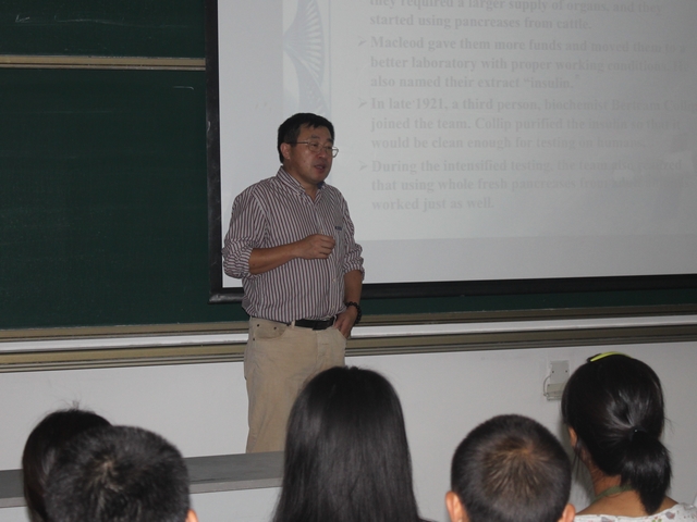 13日下午,“專業(yè)入門”活動在中關(guān)村校區(qū)信息教學樓2002舉行,活動由生命學院副院長李勤主持。副院長唐曉英教授、李春教授、屈鋒教授、譚信教授、戴榮繼教授以及學院機關(guān)負責教學工作的老師楊建梅分別就生命學院各專業(yè)發(fā)展狀況、應(yīng)用領(lǐng)域、就業(yè)前景、學習計劃等內(nèi)容為新生進行了全面介紹,新生們紛紛表示受益匪淺,在結(jié)束以后,仍然圍繞著各位專家老師進行詢問,現(xiàn)場氣氛十分熱烈。