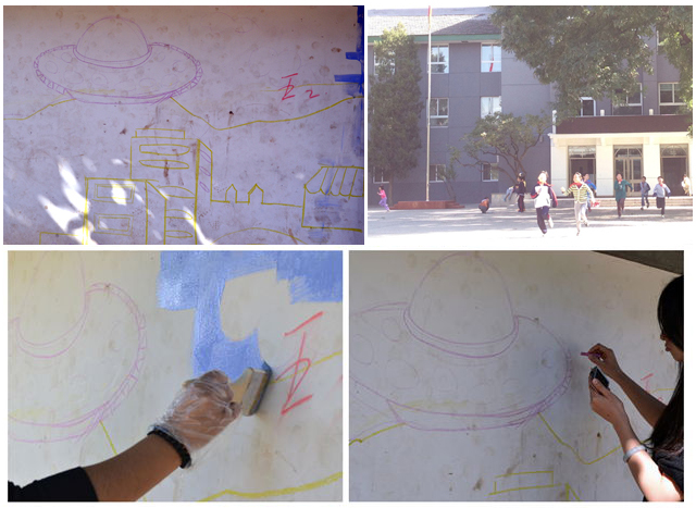 2013年10月中旬,北京理工大學設(shè)計與藝術(shù)學院2013研第一團支部美術(shù)學專業(yè)的同學們一行來到北京理工大學附屬小學,開展了“書寫陽光,美‘畫’校園”主題團日活動。他們與附屬小學五年級的孩子們共同完成了名為“陽光科技”涂鴉作品。此次活動得到了北京理工大學附屬小學的大力支持,參與此次活動的有理工附小五年級二班班主任洪梅老師、五年級學生田嘉暢、郭友維、黃靜怡、王一婷等,還有來自設(shè)計學院的研究生齊婭璇、徐欣欣、劉子龍等同學。