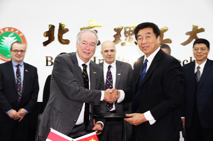 郭大成書記和Brieres校長(zhǎng)分別代表學(xué)校簽署了《北京理工大學(xué)-拉瓦爾大學(xué)框架合作協(xié)議》。
