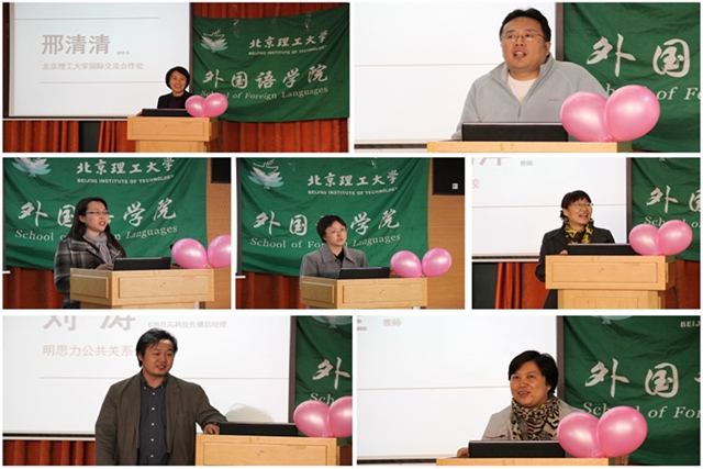 校友紀(jì)紅,目前就職于Taylor&Francis公司,從事銷售經(jīng)理工作。她和同學(xué)們分享了自己從事編輯和圖書銷售的經(jīng)歷,鼓勵同學(xué)們珍惜大學(xué)時光,在大學(xué)要多讀書、讀好書。校友翟欣,目前就職于澳大利亞駐華使館,從事翻譯工作。她在出版社及加拿大等駐華大使館的工作經(jīng)歷讓同學(xué)們敬佩有加,她鼓勵同學(xué)們要刻苦學(xué)習(xí),慎獨律己,在浮華的社會中保持一顆平靜的內(nèi)心,認(rèn)真學(xué)習(xí)專業(yè)知識,發(fā)揮專業(yè)所長,報效社會和國家。校友趙星,目前就職于中國農(nóng)業(yè)大學(xué)英語系。趙星老師以自己托福滿分的經(jīng)歷告訴同學(xué)們學(xué)習(xí)語言的重要性,并且現(xiàn)場傳授了學(xué)好語言的方法和技巧,以期對學(xué)弟學(xué)妹們有所幫助。校友范麗萍,目前就職于匯佳職業(yè)學(xué)校,她從學(xué)習(xí)的心態(tài)出發(fā),告訴同學(xué)們快樂大學(xué)的真諦。校友蔡健,目前就職于Google公司,做項目經(jīng)理,他以自己豐富的工作閱歷向同學(xué)們傳授職場之道,鼓勵同學(xué)們奮發(fā)前行,使廣大同學(xué)受益匪淺。校友劉濤,目前就職于明思力公共關(guān)系公司。他以自己成功轉(zhuǎn)型為例,從自己在公共關(guān)系公選課學(xué)習(xí)經(jīng)歷說起,告訴同學(xué)們在學(xué)習(xí)語言的同時,要注重其他學(xué)科知識的儲備和能力的培養(yǎng)。校友邢清清,目前是我校國際交流合作處副處長,也是我院英語系老師。她熱情地向同學(xué)們介紹了北京理工大學(xué)為同學(xué)們提供的豐富的留學(xué)資源,以及與我校關(guān)系密切的兩所孔子學(xué)院的相關(guān)事宜,引起同學(xué)們極大的興趣,她也告誡大家凡事要早著手、早規(guī)劃、早準(zhǔn)備。