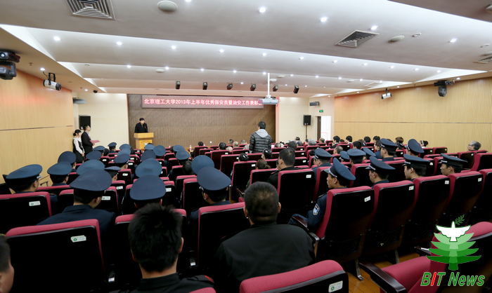 北京理工大學(xué)2013年上半年優(yōu)秀保安員——暨校園治安工作表彰大會(huì)于2013年10月30日下午在圖書(shū)館報(bào)告廳召開(kāi)。參加此次會(huì)議的有海淀分局治安大隊(duì)副大隊(duì)長(zhǎng)徐欣慶、萬(wàn)壽寺派出所所長(zhǎng)朱益生、各位北理工安保思想疏導(dǎo)師、文安保安公司總經(jīng)理王庚、華信中安保安公司常務(wù)副總經(jīng)理林永強(qiáng);離退休工作處處長(zhǎng)劉川、副處長(zhǎng)范友聯(lián)、保衛(wèi)處處長(zhǎng)代方震、副處長(zhǎng)薛捷;各位獲獎(jiǎng)保安員、獲獎(jiǎng)學(xué)生以及平安校園聯(lián)絡(luò)員、學(xué)生代表。表彰大會(huì)由保衛(wèi)處處長(zhǎng)助理榮磊主持。