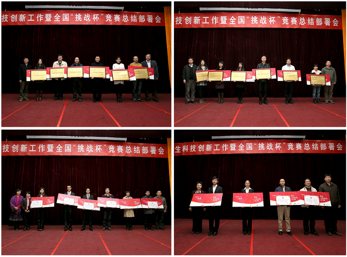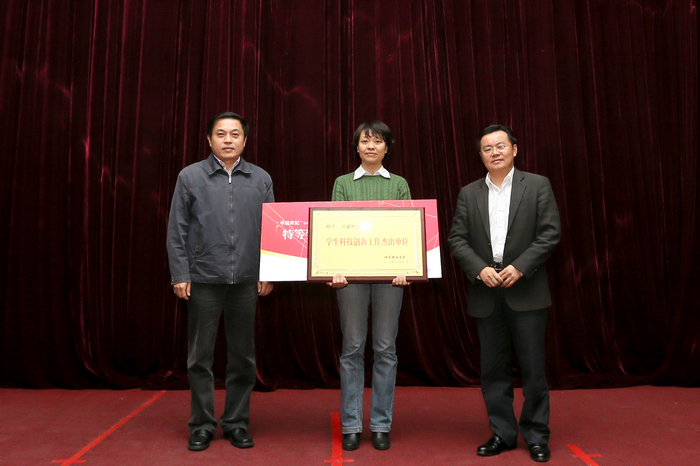 計(jì)算機(jī)學(xué)院獲得“學(xué)生科技創(chuàng)新工作杰出單位”稱號(hào),自動(dòng)化學(xué)院、材料學(xué)院、法學(xué)院、機(jī)電學(xué)院、信息學(xué)院、基礎(chǔ)教育學(xué)院等6個(gè)學(xué)院獲得“學(xué)生科技創(chuàng)新工作先進(jìn)單位”稱號(hào),宇航學(xué)院、機(jī)械學(xué)院、光電學(xué)院、軟件學(xué)院、生命學(xué)院、人文學(xué)院等6個(gè)學(xué)院獲得“學(xué)生科技創(chuàng)新工作優(yōu)秀單位”稱號(hào),獲獎(jiǎng)單位獲得“華瑞世紀(jì)”學(xué)生科技創(chuàng)新獎(jiǎng)。李冬妮、鐘海政、羅麗、楊毅、羅慶生、羅森林等6名指導(dǎo)教師獲得“學(xué)生科技創(chuàng)新工作優(yōu)秀指導(dǎo)教師”稱號(hào)和“華瑞世紀(jì)”學(xué)生科技創(chuàng)新貢獻(xiàn)獎(jiǎng)。李邈等39名同學(xué)獲得“學(xué)生科技創(chuàng)新先鋒”稱號(hào)和“華瑞世紀(jì)”獎(jiǎng)學(xué)金。校第十屆“世紀(jì)杯”競(jìng)賽獲獎(jiǎng)團(tuán)隊(duì)獲得“華瑞世紀(jì)”世紀(jì)杯獎(jiǎng)學(xué)金??偑?jiǎng)金數(shù)額為65.9萬(wàn)元。陳立光校友和學(xué)校領(lǐng)導(dǎo)為獲得表彰的集體和個(gè)人頒獎(jiǎng)。