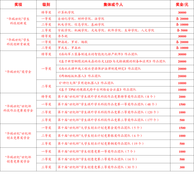 “華瑞世紀(jì)”獎(jiǎng)金一覽(合計(jì)65.9萬(wàn)元)