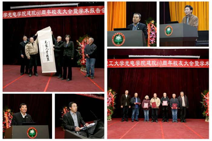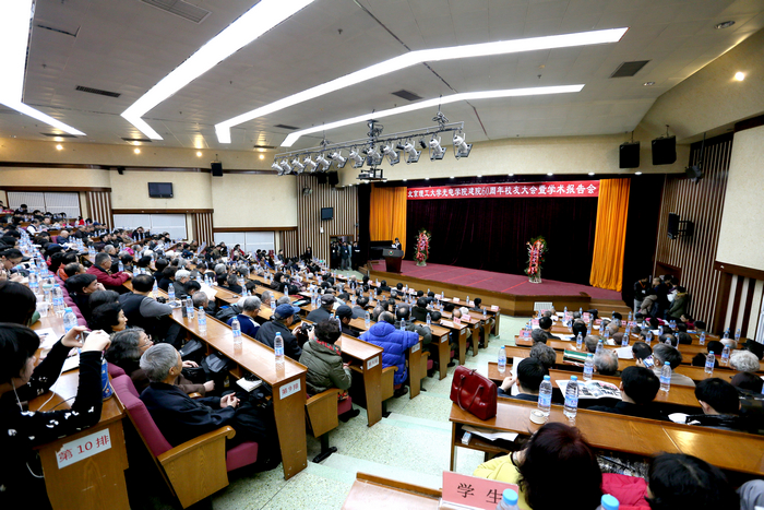 歲月如歌,六十載春華秋實;盛世相約,喜滿園桃李芬芳。2013年12月7日上午9點,近500名校友歡聚一堂,參加在中心教學樓一層報告廳舉行的“光電學院建院60周年校友大會暨學術報告會”。大會由學院院長薛唯教授主持,學校黨委書記郭大成教授出席會議并講話,對外工作委員會主任、原校黨委書記焦文俊教授等光電校友應邀參加,20多個兄弟院校和研究院所發(fā)來賀信。
