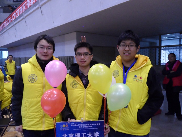 2013年亞洲地區(qū)中國(guó)大陸國(guó)際大學(xué)生程序設(shè)計(jì)競(jìng)賽(ACM/ICPC)選拔賽設(shè)有五個(gè)賽區(qū),分別是長(zhǎng)春賽區(qū),南京賽區(qū),成都賽區(qū),長(zhǎng)沙賽區(qū)和杭州賽區(qū)。在教務(wù)處的領(lǐng)導(dǎo)下,計(jì)算機(jī)學(xué)院負(fù)責(zé)組織與訓(xùn)練該項(xiàng)賽事。辛勤耕耘,終有所獲,在2013年亞洲地區(qū)賽中刷新了北京理工大學(xué)在地區(qū)賽上的最好成績(jī)。北京理工大學(xué)代表隊(duì)分別在五個(gè)賽區(qū)經(jīng)過(guò)激烈的網(wǎng)上預(yù)賽獲亞洲現(xiàn)場(chǎng)賽資格,每個(gè)賽區(qū)各派兩支代表隊(duì)參加現(xiàn)場(chǎng)比賽,獲得二金,三銀,一銅的高基點(diǎn)好成績(jī)。最終由計(jì)算機(jī)學(xué)院老師林永鋼,學(xué)生劉星辰(10級(jí))、易毅(10級(jí))、梁耀波(09級(jí))組成的BIT_laser隊(duì)?wèi){借在長(zhǎng)沙賽區(qū)取得的優(yōu)異成績(jī),突出重圍,獲得了明年在俄羅斯葉卡捷琳堡舉行的世界總決賽的入場(chǎng)券。這是北理學(xué)子的驕傲,更是北京理工大學(xué)的驕傲,期待他們?cè)谑澜缈倹Q賽中有出色的表現(xiàn)。