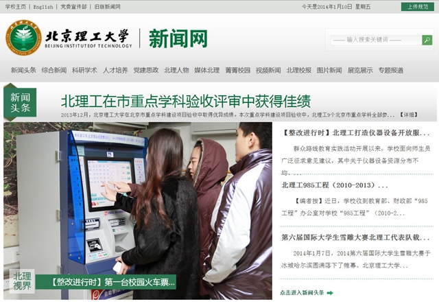 一則有趣的校園新聞背后,不僅整合了宣傳部(新聞中心)在新聞線索挖掘、新聞內(nèi)容制作和優(yōu)勢圖文報(bào)道能力,還充分發(fā)揮了新媒體優(yōu)良的社會(huì)傳播能力,在學(xué)校內(nèi)外形成了熱點(diǎn)關(guān)注,用全新的視角和手段,展現(xiàn)北理工形象,傳播北理工文化,這其中起到“樞紐”作用的就是于2013年下半年全新上線的北京理工大學(xué)新聞網(wǎng)。
