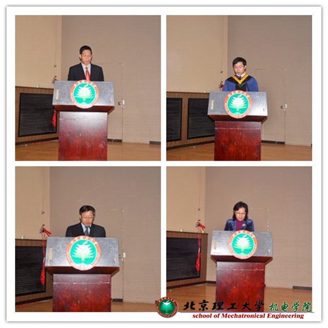 焦清介院長(zhǎng)代表學(xué)院致辭,他對(duì)即將畢業(yè)的研究生表示祝賀,并對(duì)即將踏上人生新起點(diǎn)的畢業(yè)生們表達(dá)了美好的祝愿,同時(shí)對(duì)他們提出三點(diǎn)希望,希望他們做一個(gè)擁有崇高理想的人、一個(gè)用科研精神奉獻(xiàn)社會(huì)的人、一個(gè)勇于擔(dān)當(dāng)?shù)娜?。力學(xué)專(zhuān)業(yè)朱聰同學(xué)代表畢業(yè)生發(fā)言,他以詼諧幽默的語(yǔ)言敘述了研究生的工作、生活以及學(xué)習(xí),將情感深深融入到生活、科研中的點(diǎn)點(diǎn)滴滴。平凡中帶著激情,有失落也有興奮,有挫折也有成功。最后他代表即將畢業(yè)的機(jī)電學(xué)子表達(dá)了對(duì)恩師的感謝以及衷心的祝愿。機(jī)電學(xué)院副院長(zhǎng)韓峰教授宣讀了北京理工大學(xué)學(xué)位授予決定。機(jī)電學(xué)院黨委書(shū)記栗蘋(píng)教授宣讀了2014年機(jī)電學(xué)院的北京市優(yōu)秀畢業(yè)生、北京理工大學(xué)優(yōu)秀畢業(yè)生名單。由機(jī)電學(xué)院張慶明老師和門(mén)建兵老師為獲得北京市優(yōu)秀畢業(yè)生榮譽(yù)稱(chēng)號(hào)的畢業(yè)生頒發(fā)了榮譽(yù)證書(shū),由機(jī)電學(xué)院王亞斌老師和陳軍老師為獲得北京理工大學(xué)優(yōu)秀畢業(yè)生榮譽(yù)稱(chēng)號(hào)的畢業(yè)生頒發(fā)了榮譽(yù)證書(shū),肯定了他們?cè)谘芯可陂g的優(yōu)秀表現(xiàn)。