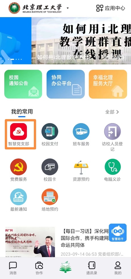 移動端:在i北理“全部應(yīng)用”中搜索“智慧黨支部”,點擊進入,建議橫屏觀看。