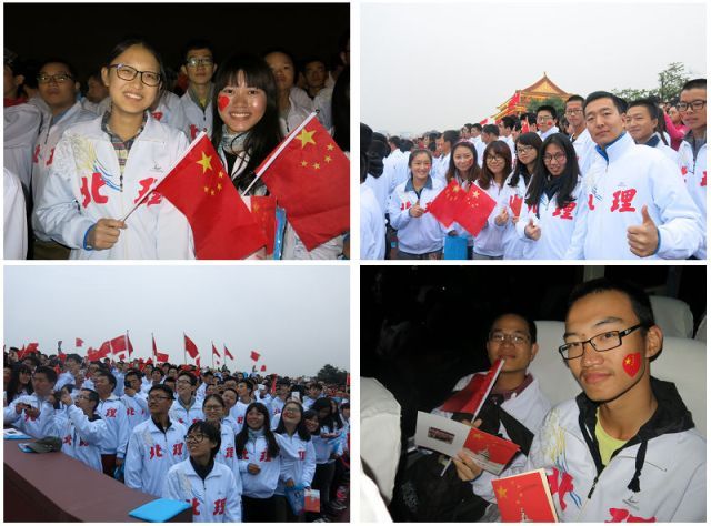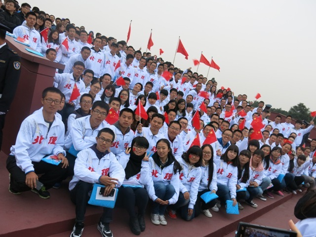 當(dāng)歷史的車輪在曲折的進(jìn)程中留下深淺不一的轍痕,時間的指針也緩緩指向了2014年10月1日。這一天,是我們的偉大祖國六十五周年華誕,是值得億萬中華兒女歡騰慶祝的日子。六十五年前,老一輩無產(chǎn)階級革命家們在天安門城樓上向全世界莊嚴(yán)宣告中華人民共和國成立,升起了第一面五星紅旗,揭開了中國歷史的新篇章;六十五年后的今天,百余名北理學(xué)子與首都各界人民一道,懷著崇敬激動的心情匯聚天安門廣場,觀看升國旗儀式,共同為偉大的祖國母親慶生!