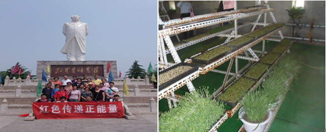 5月21日,兩黨支部開展了參觀“紅星農(nóng)場”活動。在布滿毛澤東主席詩詞、圖片的文化墻前,黨員們駐足瀏覽,品讀交流,感嘆今天幸福生活來之不易。學生黨員們還學習和體驗了芽苗種植,用自己的雙手和汗水去感受勞動的快樂。