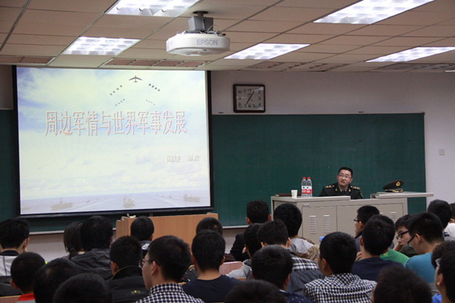 在當(dāng)前國(guó)際軍事形勢(shì)發(fā)展方面,劉洋博士從亞太地區(qū)軍事力量、我軍面臨的國(guó)際環(huán)境、我軍的作戰(zhàn)優(yōu)勢(shì)等角度進(jìn)行了闡述,并結(jié)合釣魚(yú)島、臺(tái)灣等眾多熱點(diǎn)問(wèn)題進(jìn)行了詳細(xì)的分析,使同學(xué)們從一個(gè)新的角度和高度正確認(rèn)識(shí)了當(dāng)前的國(guó)際軍情。