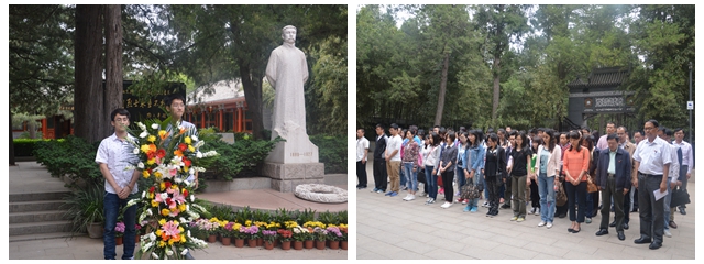 活動伊始,由學生代表為李大釗烈士敬獻花籃。朵朵白花,象征著烈士心靈的純潔無瑕,象征著烈士崇高的品質(zhì)和無私的精神,寄托著師生們深深的哀思,代表著后輩對李大釗烈士的無限敬仰。之后,全體師生在李大釗烈士的墓碑前沉重默哀,向他頑強不屈、堅持不懈、視死如歸、盡忠報國的精神致敬。