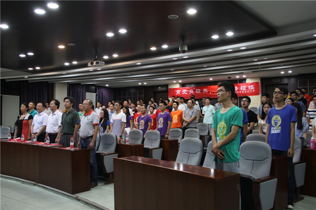 在建黨九十四周年這樣一個(gè)特殊的日子里,首先進(jìn)行的是重溫入黨誓詞活動(dòng)。在潘峰副書(shū)記帶領(lǐng)下,全體新老黨員在鮮紅的黨旗下高舉右手,莊重宣誓,重溫自己對(duì)黨忠誠(chéng)的誓言,表達(dá)了為黨的事業(yè)奮斗終生的決心,受到了一次心靈的洗禮和黨性再教育。