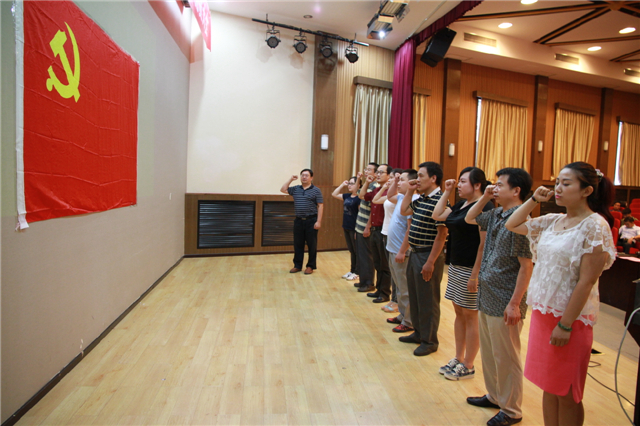 大會舉行了新黨員入黨宣誓儀式。在黨委組織委員、集團(tuán)常務(wù)副總經(jīng)理宋希博的帶領(lǐng)下,9名新黨員舉起右手,面對鮮紅的中國共產(chǎn)黨黨旗進(jìn)行了莊嚴(yán)宣誓。