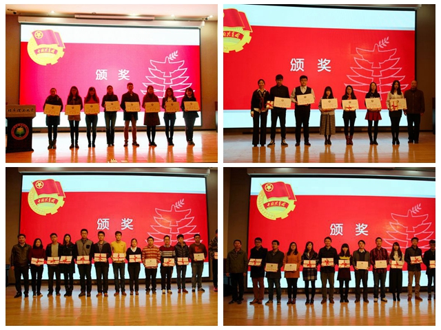 會(huì)上,校團(tuán)委副書記茍曼莉作2015年寒暑假學(xué)生社會(huì)實(shí)踐工作總結(jié)。校長(zhǎng)助理郝志強(qiáng)宣讀了表彰決定。經(jīng)過(guò)網(wǎng)絡(luò)投票、現(xiàn)場(chǎng)答辯、專家評(píng)審等多個(gè)環(huán)節(jié),并結(jié)合發(fā)團(tuán)率計(jì)算寒暑假組織分和實(shí)踐分?jǐn)?shù),授予基礎(chǔ)教育學(xué)院機(jī)械與運(yùn)載學(xué)部等8個(gè)單位“先進(jìn)工作單位”稱號(hào),授予信息與電子學(xué)院明圓支教團(tuán)等6個(gè)實(shí)踐團(tuán)隊(duì)“品牌團(tuán)隊(duì)”稱號(hào),授予機(jī)電學(xué)院赴四川達(dá)州社會(huì)實(shí)踐團(tuán)等85個(gè)實(shí)踐團(tuán)隊(duì)“優(yōu)秀實(shí)踐團(tuán)隊(duì)”稱號(hào),授予姜曼等27名同志“先進(jìn)工作者”稱號(hào),授予盛筠等27名老師“優(yōu)秀指導(dǎo)教師”稱號(hào),授予岳夢(mèng)坤等120名同學(xué)“優(yōu)秀實(shí)踐團(tuán)員”稱號(hào)。與會(huì)領(lǐng)導(dǎo)為受表彰的師生頒獎(jiǎng)并合影留念。