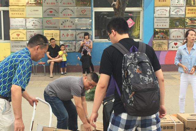 中午時,志愿者們?yōu)楣聝涸旱暮⒆觽兯蜕狭似辗ㄐ麄鞑牧虾鸵恍┥畋貍湮镔Y,并與孩子們共進午餐。此后,志愿者們幫助孤兒院的工作人員完成了布置教室、布置六一聯(lián)歡會舞臺、打掃操場、清洗碗筷等工作,并為工作人員進行法律咨詢服務。