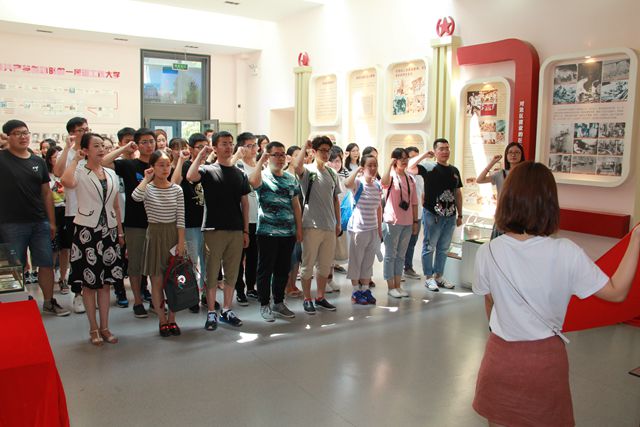 參觀結(jié)束后,在校史館大廳,全體黨員面向黨旗重溫入黨誓詞。在黨員代表遲昕鳳同志的帶領(lǐng)下,全體黨員舉起右手進(jìn)行宣誓:“我志愿加入中國共產(chǎn)黨……”,莊嚴(yán)而有力的聲音回蕩整個校史館。通過重溫入黨誓詞,使每一位黨員的內(nèi)心都受到了新的觸動。