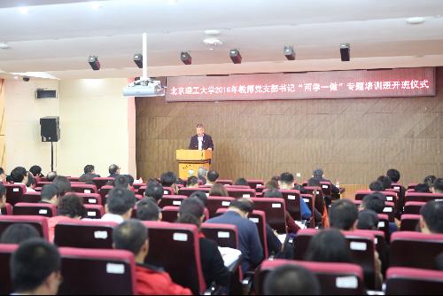 2016年10月18日下午,北京理工大學2016年教師黨支部書記“兩學一做”專題培訓班開班儀式在圖書館報告廳舉行。黨委書記趙長祿、紀委書記楊志宏,各黨群部門負責人,各基層黨委、黨總支、直屬黨支部書記,全校130余名教師黨支部書記參加了開班儀式。開班儀式由黨委組織部部長、黨校常務副校長張笈主持。