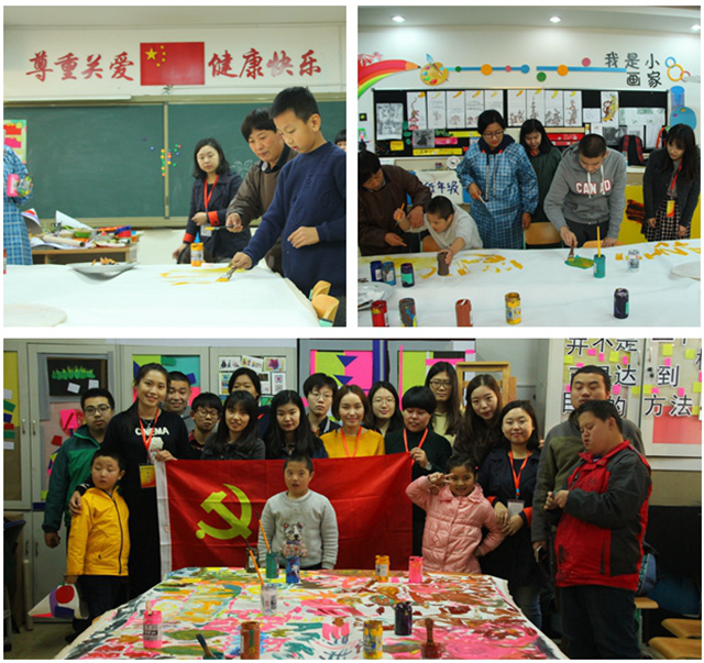 學院教職工第一黨支部攜手2015級研究生第三黨支部與北京市朝陽區(qū)安華學校開展“關愛匯聚力量,色彩繪出笑顏”共建活動,活動以“接納包容,了解尊重”為原則,以關愛特殊兒童群體的支教服務為載體,以為自閉癥兒童帶來點滴快樂為宗旨,積極融入社會不同人群的生活,并盡己所能幫助他人。師生黨員先后于5月、10月、11月多次前往安華學校開展主題黨日活動,以各種藝術形式為媒介帶領他們創(chuàng)作繪畫,共同策劃繪制美麗校園長卷,引領他們用藝術的方式表達情感;同時教職工黨員指導學生黨員共同為安華學校的美術教師設計制作了形式多樣的教學用具。