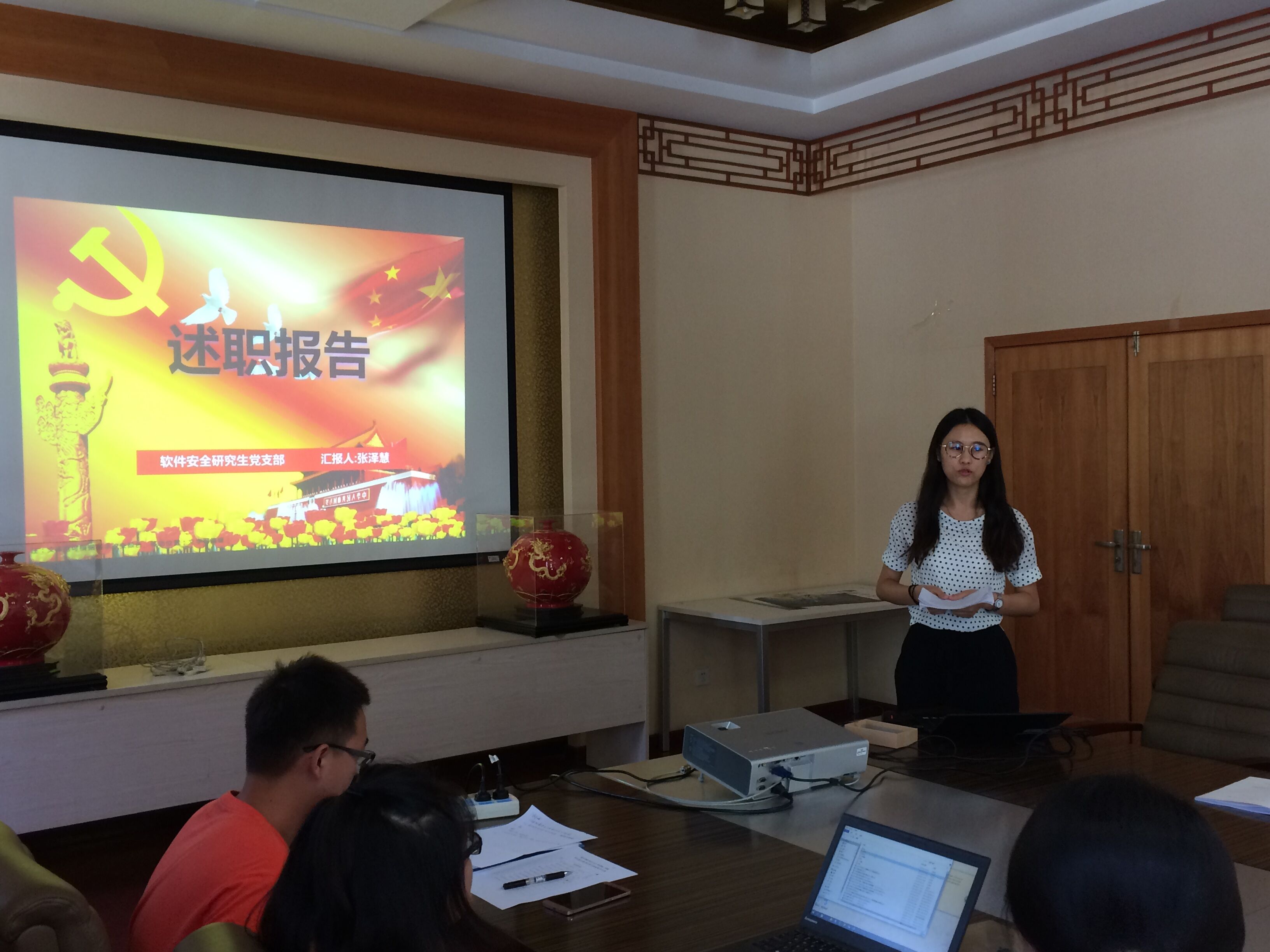 軟件學(xué)院本學(xué)期對研究生黨支部進(jìn)行了改革,打破原有以班級為單位劃分的組建方式,將博士黨員、碩士一年級黨員以研究所為基本單位設(shè)立研究生黨支部。因此在此次述職中,調(diào)整后的黨支部重點(diǎn)介紹了在促進(jìn)實驗室建設(shè)方面的工作。各系所研究生黨支部邀請實驗室老師、同學(xué),圍繞實驗室學(xué)術(shù)氛圍建設(shè)、實驗室安全衛(wèi)生建設(shè)、實驗室集體凝聚力建設(shè)等展開討論。根據(jù)討論結(jié)果,各研究生黨支部開展了夏日解暑、羽毛球比賽、實驗室大掃除、科研大討論等活動,促進(jìn)實驗室人文氛圍建設(shè)及實驗室學(xué)術(shù)氛圍建設(shè)。通過交流匯報,各系所的研究生黨支部相互借鑒,對下一步工作開展有了更活潑、更實在的構(gòu)想。