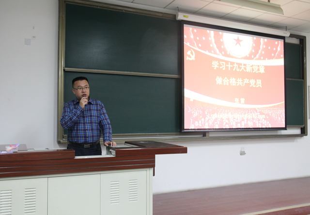 張雷講座主題為《學(xué)習(xí)十九大新黨章,做合格共產(chǎn)黨員》,課程就黨章的基本概念,黨章的地位,黨章的作用進(jìn)行了詳細(xì)的闡述。張雷帶領(lǐng)同學(xué)們一起回顧了從中共一大到十九大之間,黨章從初步編寫制定到逐步完善的過程,并詳盡分析了十九大黨章中新修訂的八項(xiàng)內(nèi)容。課程最后,張雷以鮮活的案例再次強(qiáng)調(diào)了要想成為一名合格的共產(chǎn)黨員,就必須遵守黨章,要有堅(jiān)定的信仰,不僅組織上入黨,更要思想上入黨,“組織上入黨一生一次;思想上入黨一生一世”,堅(jiān)定了同學(xué)們?nèi)朦h的信念以及對信仰的堅(jiān)守。