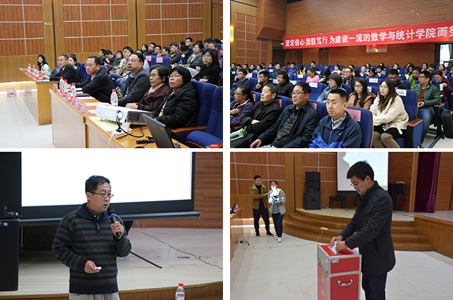 黨委書(shū)記高偉濤同志做了題為《堅(jiān)定信心 勇毅篤行 為建設(shè)一流的數(shù)學(xué)與統(tǒng)計(jì)學(xué)院而努力奮斗》的報(bào)告。報(bào)告回顧了四年來(lái),在學(xué)校黨委行政的正確領(lǐng)導(dǎo)下,學(xué)院黨委帶領(lǐng)全院師生在黨建及思想政治教育、教學(xué)及人才培養(yǎng)、學(xué)科建設(shè)及科學(xué)研究、師資隊(duì)伍建設(shè)、國(guó)際交流與合作、文化氛圍建設(shè)等方面取得的成績(jī),并對(duì)學(xué)院黨委未來(lái)的工作提出了建議,希望新一屆黨委堅(jiān)持學(xué)習(xí)宣傳貫徹黨的十九大精神,以習(xí)近平新時(shí)代中國(guó)特色社會(huì)主義思想為指導(dǎo),以深入推動(dòng)“雙一流”建設(shè)為目標(biāo),努力提高學(xué)院師生的思想政治素質(zhì),加強(qiáng)基層組織建設(shè),提高治院辦學(xué)能力,創(chuàng)建激情進(jìn)取的發(fā)展氛圍。